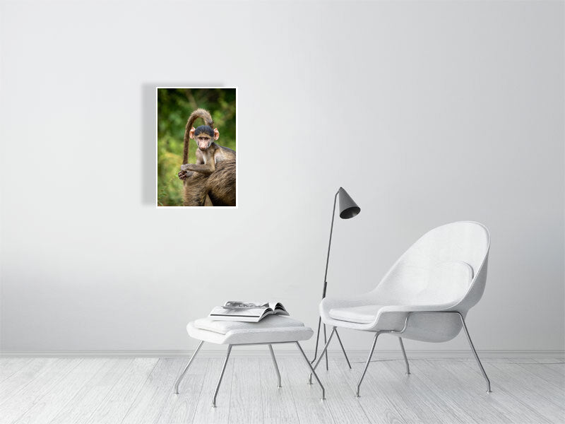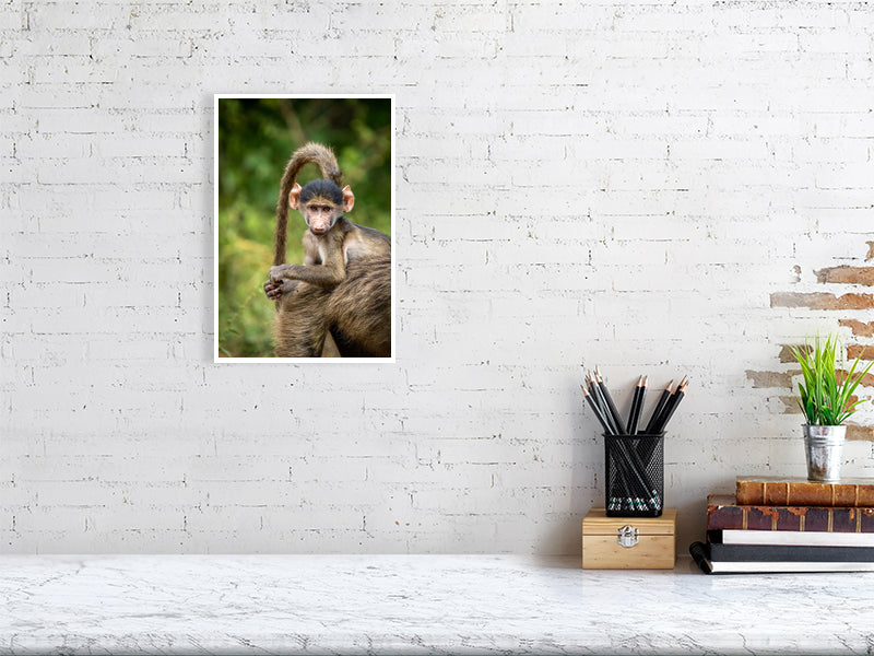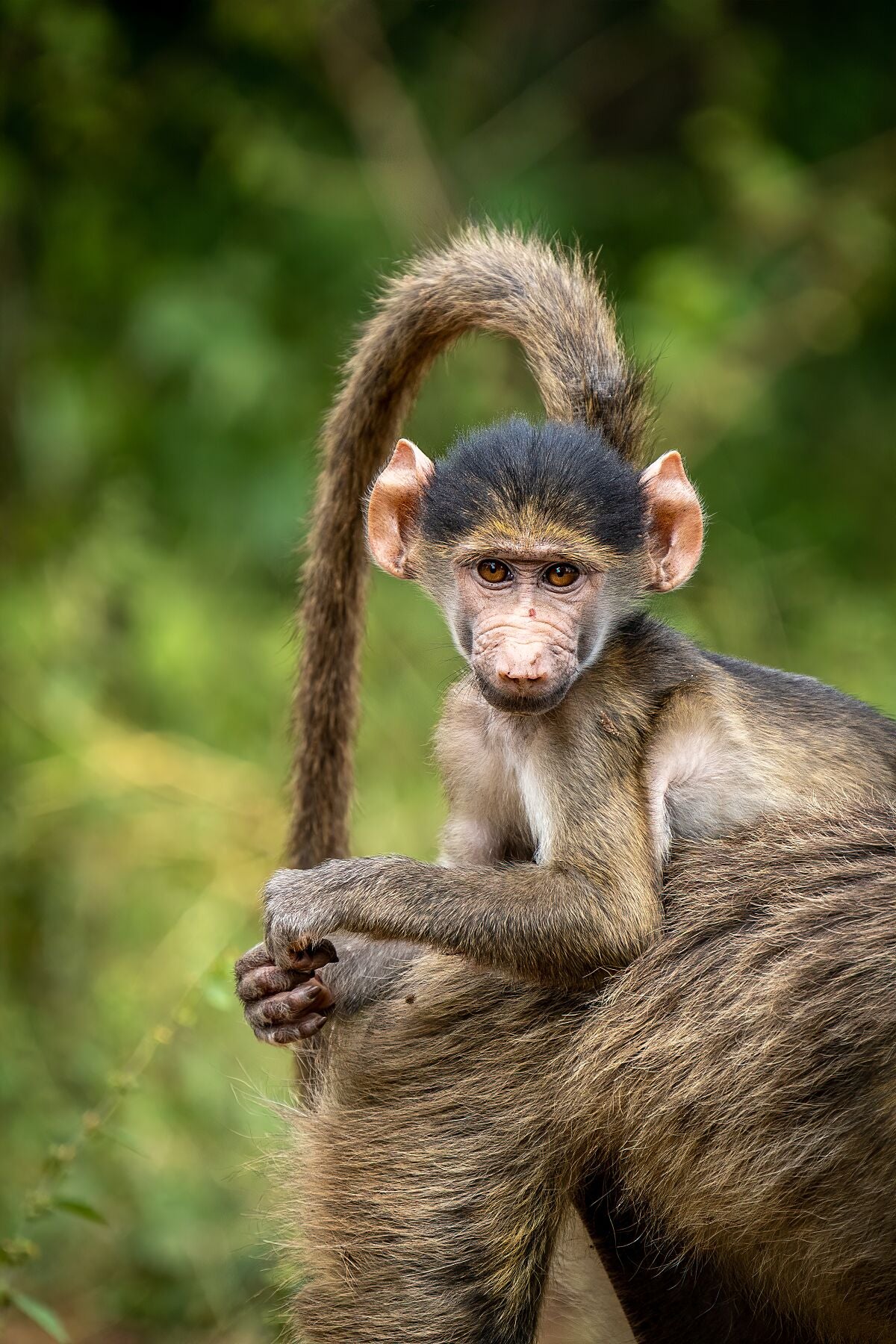 Description: One thing I like to do whilst out in the bush is spend time with baboons. They are usually in large groups and sprawled across a vast area. You will see the little ones rushing about causing havoc. There will be groups sat together grooming each other. There will be the big cheeky males asserting their authority. The babies can be found clutching to their mothers back or stomach. In this case this naughty little one was getting a free ride around the group.